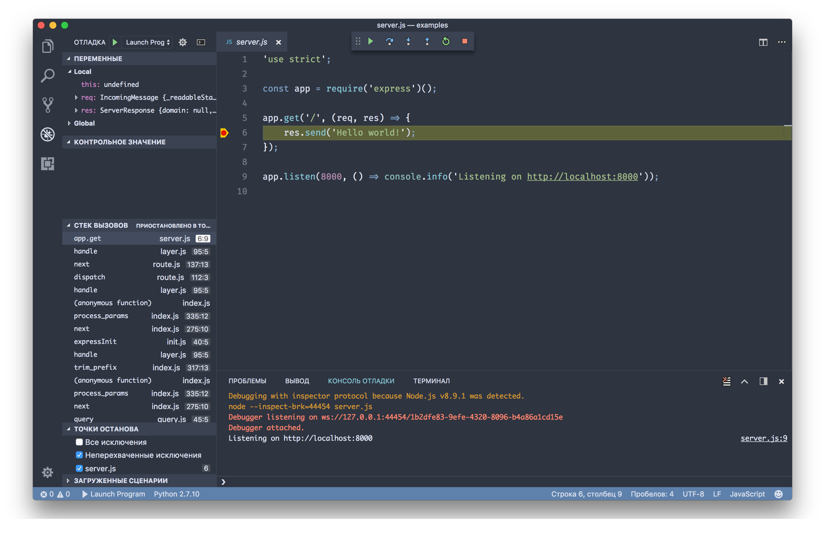 1. Перейти на вкладку Отладка (Ctrl+Shift+D)