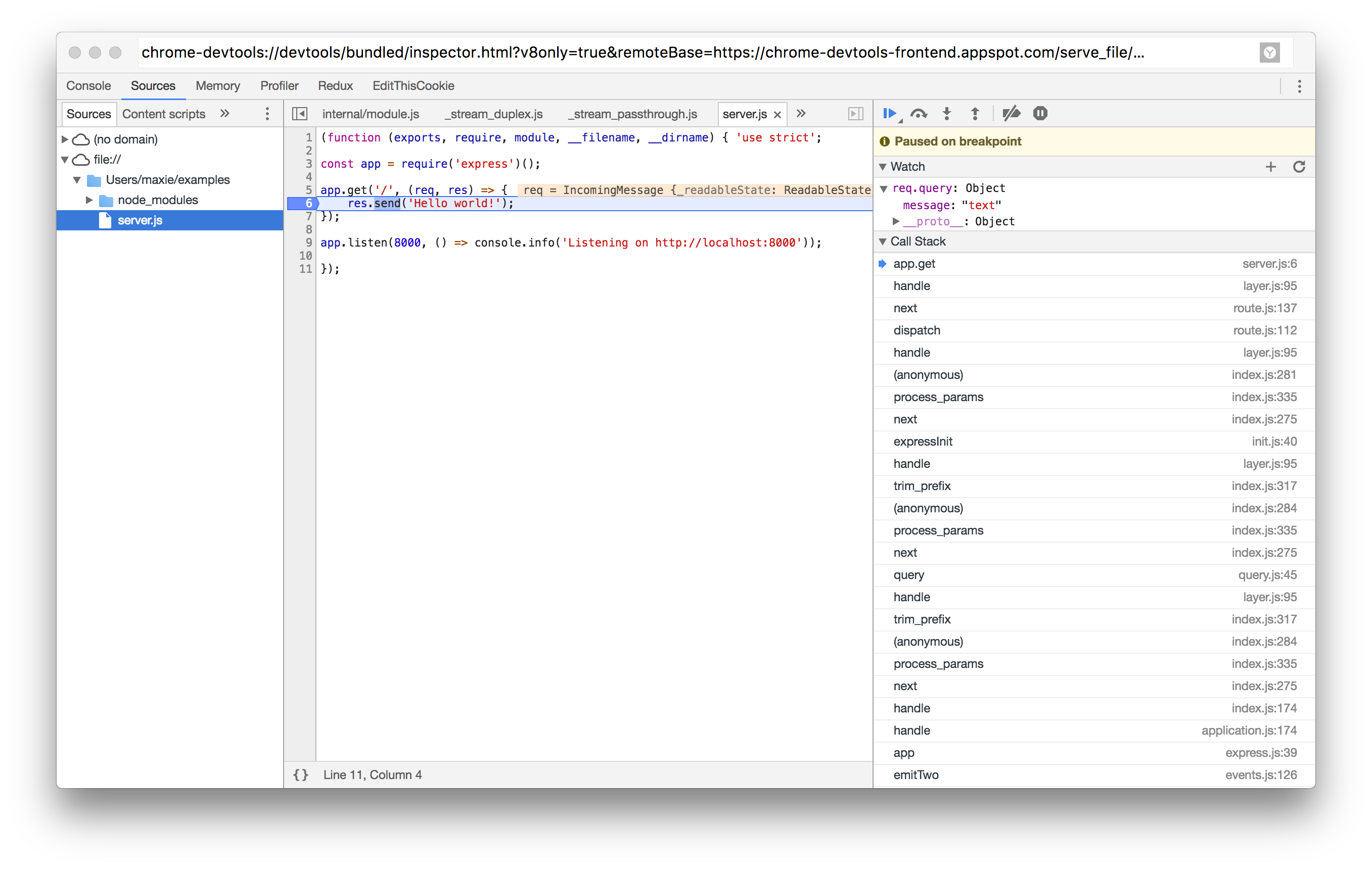 Чтобы указать в коде точку останова достаточно добавить в него ключевое слово debugger