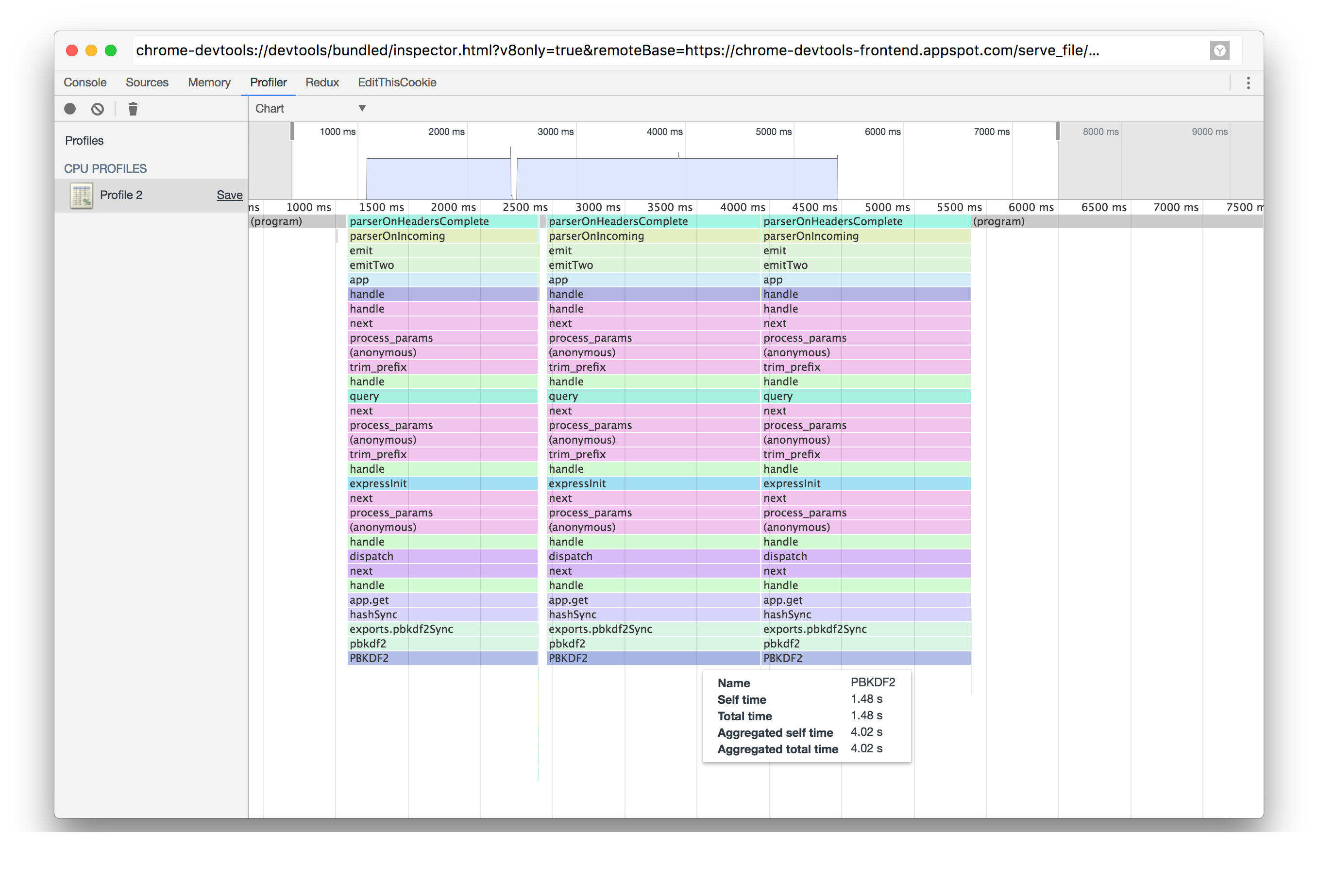 В режиме отладки в Chrome DevTools нужно перейти на вкладку profiler и нажать Start