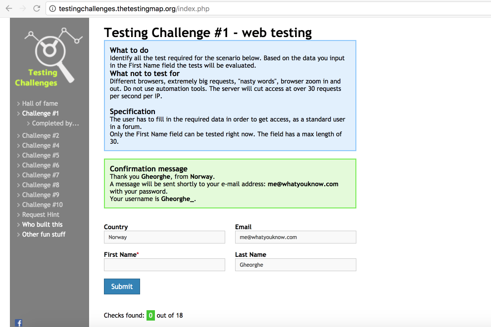 Предусловие: Перейти на страницу регистрации. Все обязательные поля, кроме поля "Имя", необходимо заполнить валидными данными